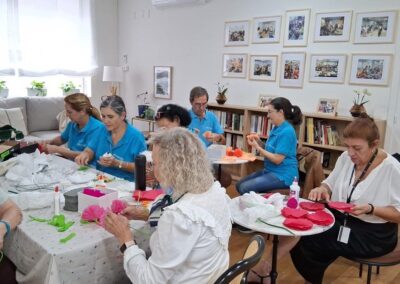 El ambiente fue cercano, dinámico y lleno de buen humor. Entre papeles, tijeras y risas, se fueron creando decenas de flores que pronto tendrían un nuevo significado en otro espacio y para otras personas.